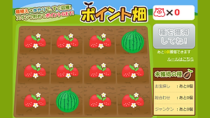 ⇒最後にポイント畑でクリックで種を植え枯れナイン(水)をやると果実が実ります。